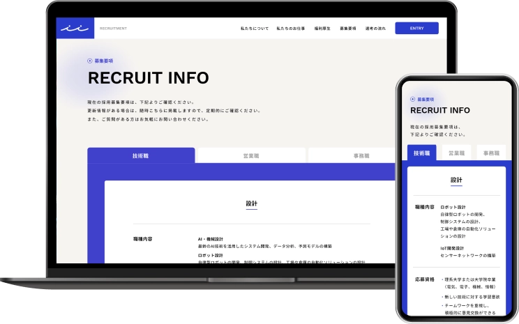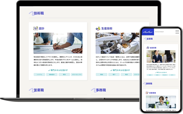 コーポレートサイトとも調和した、オリジナル性の高い採用ページをお届けします。